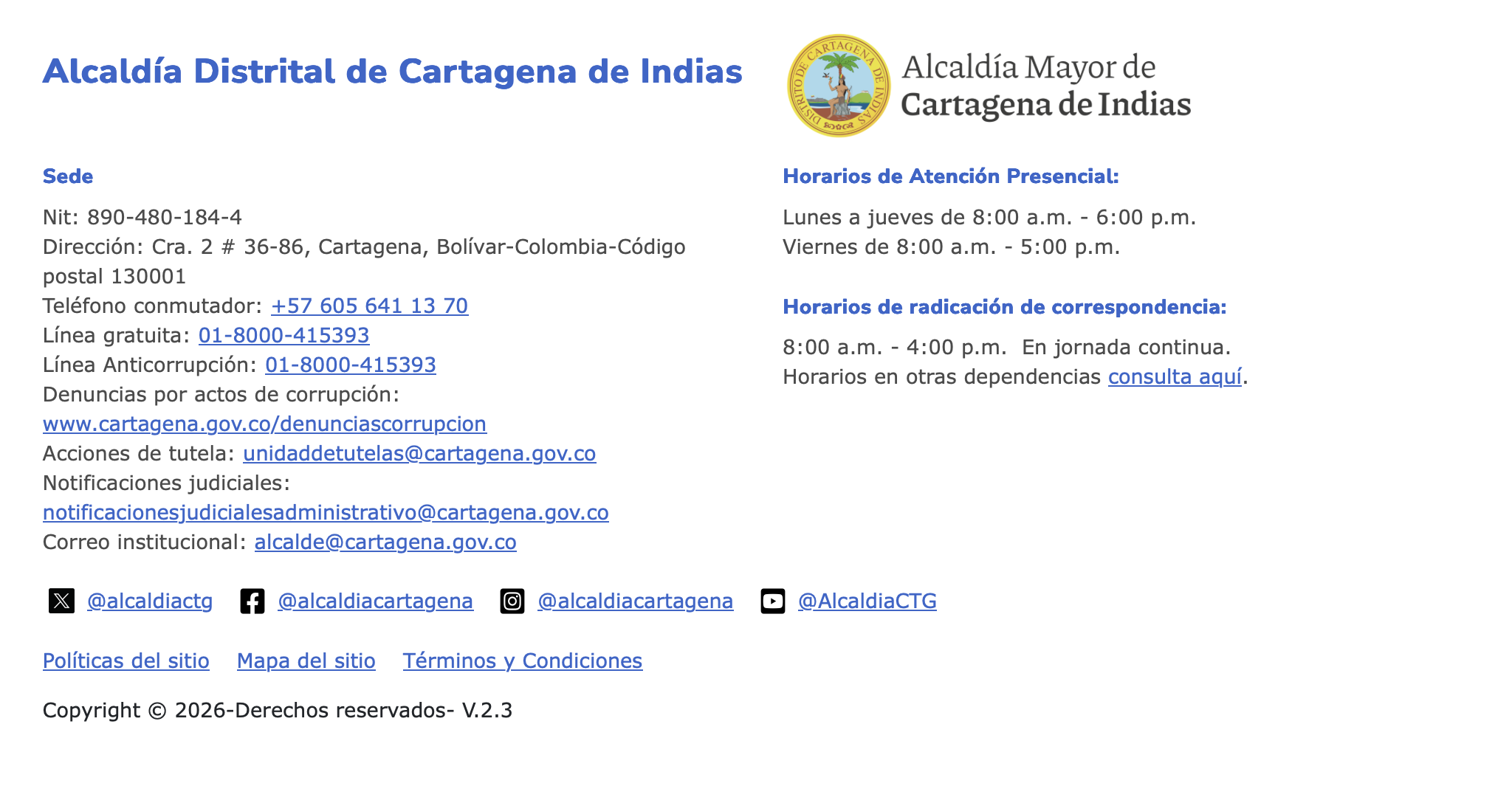 Direcciones, teléfonos y horarios de atención